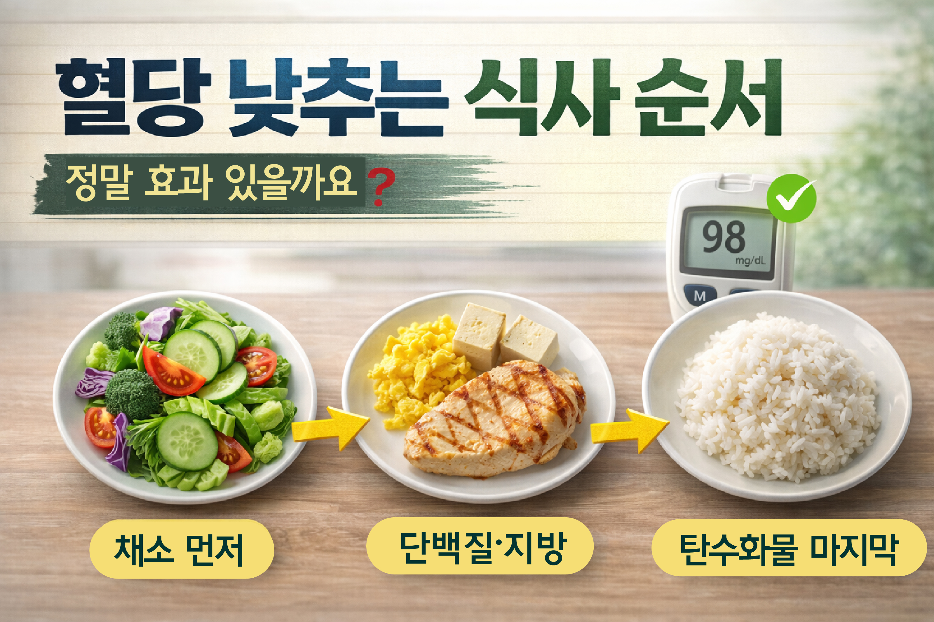 결론부터 말하면, 식사 순서는 혈당 상승 속도에 영향을 줄 수 있습니다.